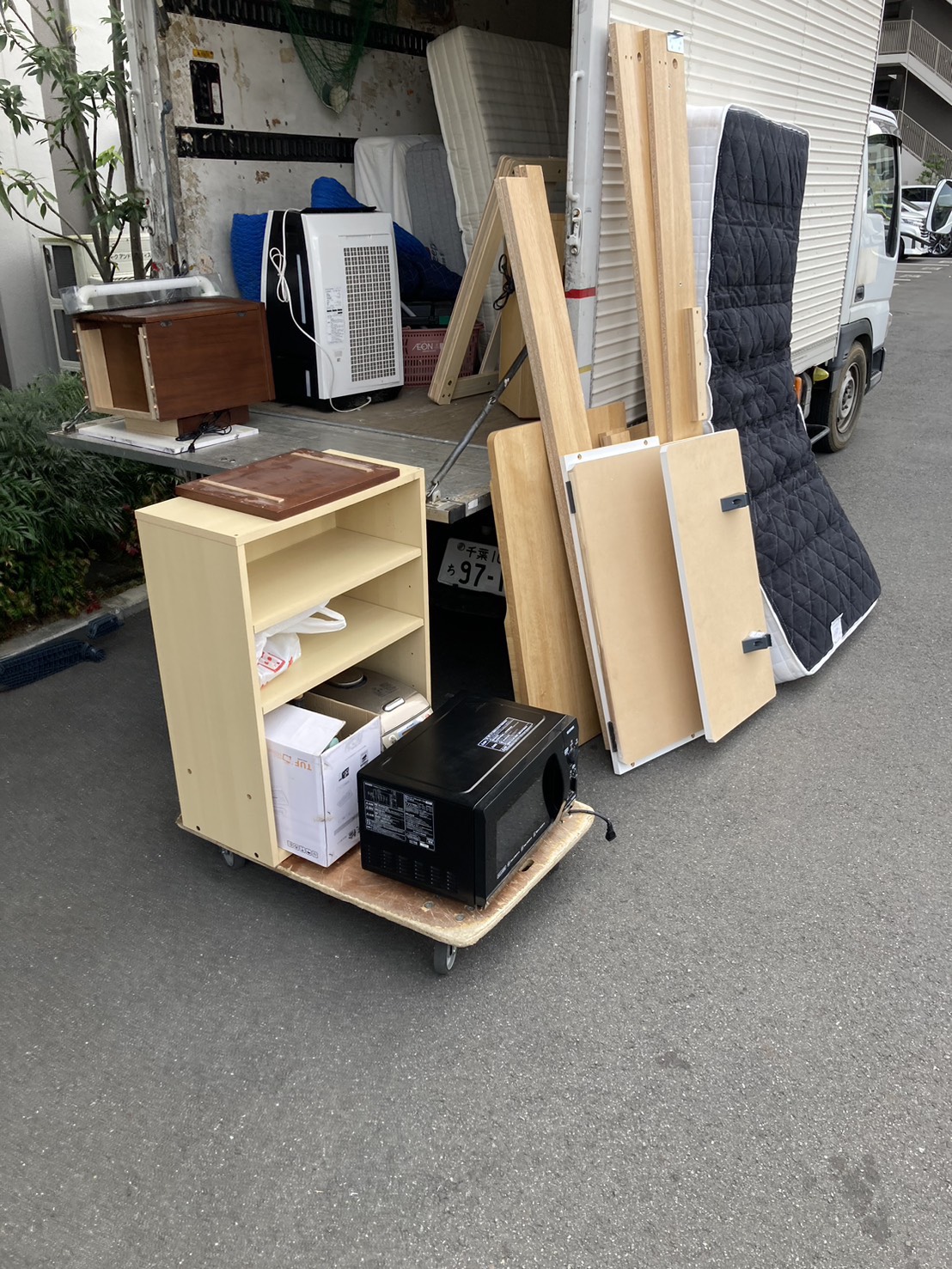スプリングマットレス、ベッドフレーム、電子レンジ、収納棚、その他