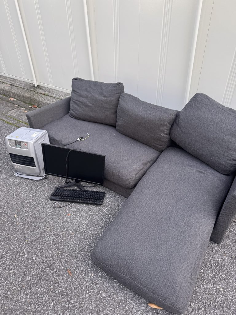 ソファ、パソコン、ヒーター
