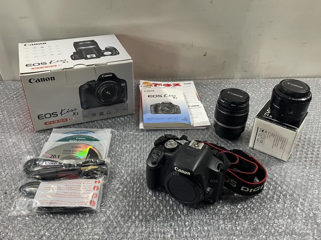 千葉県/市川市/出張買取/ジャンク/Canon/キャノン/EOS Kiss X3/デジタル一眼レフカメラ/18-55/F3.5-5.6/EF/50mm/F1.8 Ⅱ/AF/DS126231